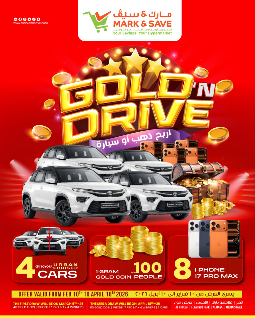 Riyadh: Mark & Save Hypermarket has announced a massive promotional campaign, ‘Gold N Drive’, offering incredible offers and luxury prizes for customers during the holy month of Ramadan. Company officials stated in a press conference that the two-month-long campaign will run from February 10 to April 10, providing shoppers with a chance to win big.